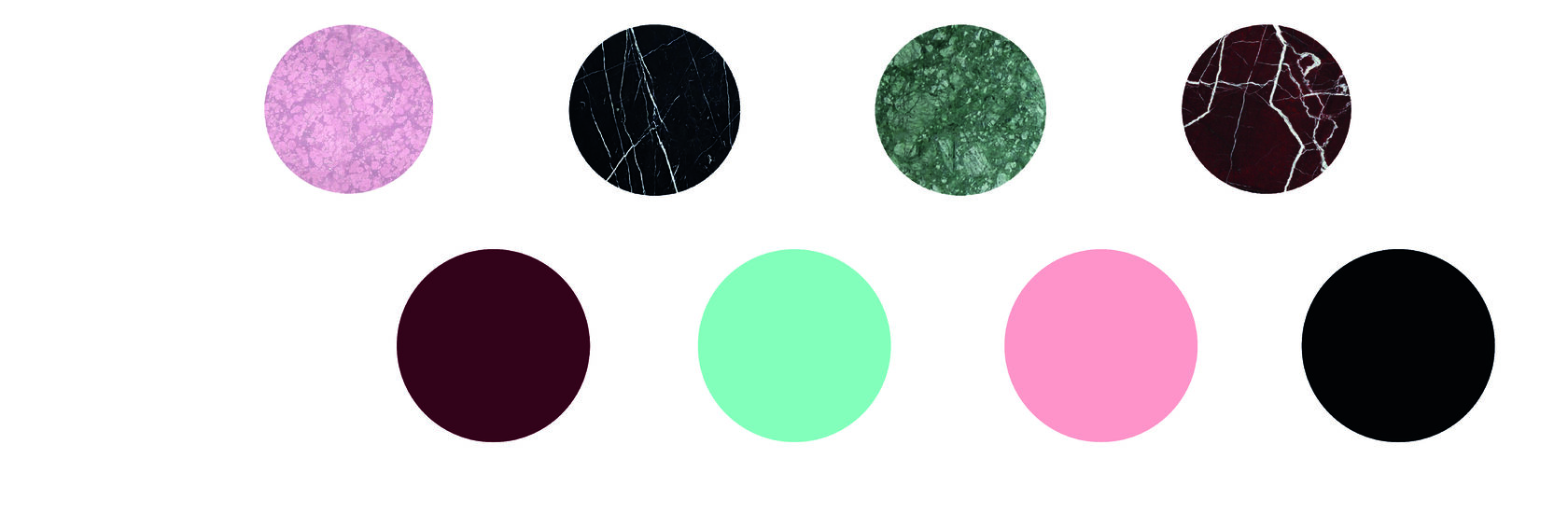 *tables can be ordered in different combinations of marbles and metal structures presented in collection. CUBOZOA with small table: indian marble // pink colored metal structure.